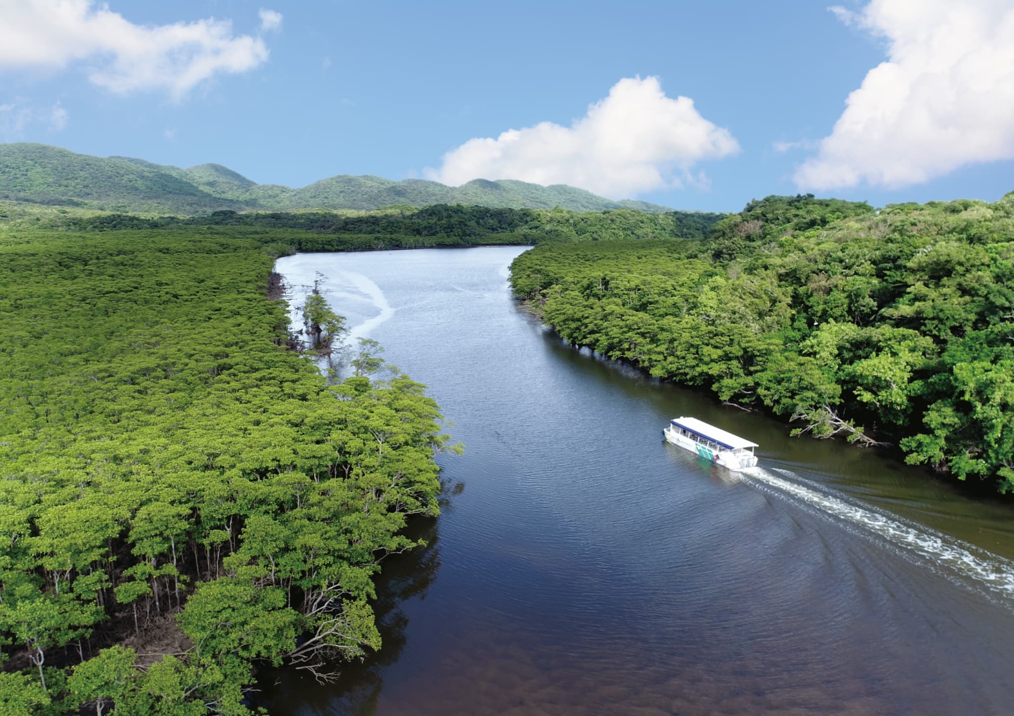 공식 상품 설명 기준으로 이 코스의 중심은 나카마강 맹그로브 크루즈입니다. 일본 최대급 맹그로브 숲을 배로 보는 방식이라, 카누처럼 체력이 들지 않으면서도 “이리오모테다운 장면”을 가장 쉽게 봅니다. 아이가 있거나 부모님 동반이면 바로 이 구간이 일정 만족도를 끌어올립니다. 바람이 있거나 살짝 흐린 날에도 숲 분위기가 살아 있어 오히려 만족도가 좋은 편입니다.