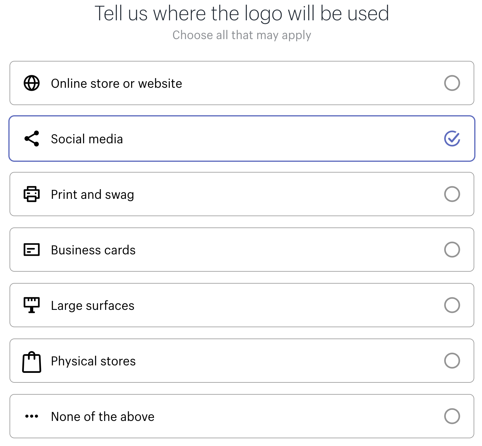 6. 로고가 어디에 사용될지 지정합니다.