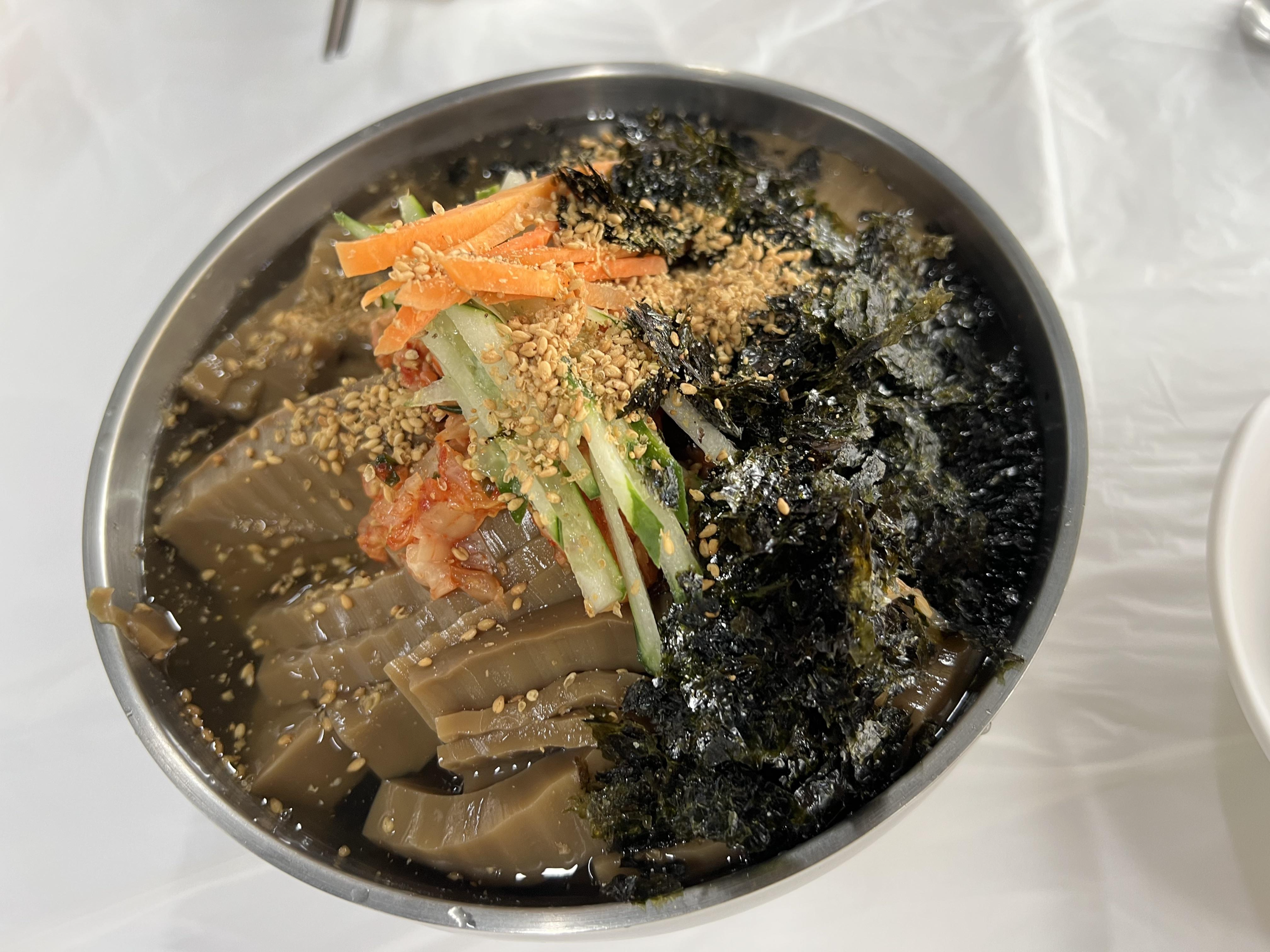 묵사발, 메밀전병, 옹심이, 감자적 이렇게 시켰는데